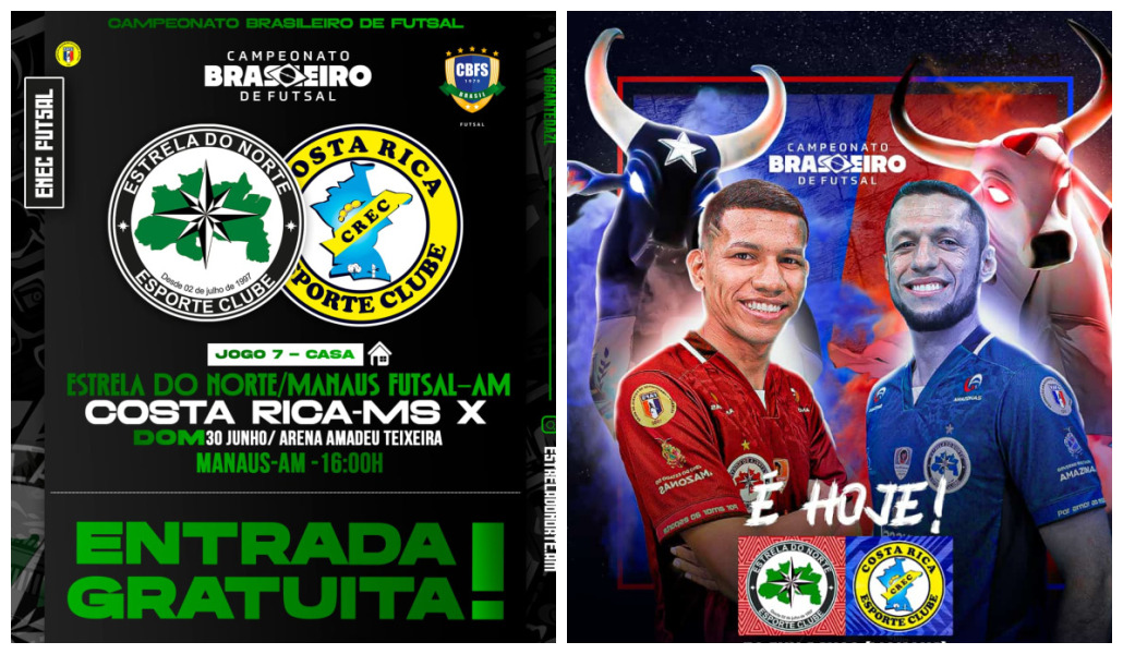 Com sete pontos em seis jogos, o Estrela do Norte/Manaus Futsal é o sexto colocado na tabela do Grupo A do Brasileirão. Em caso de vitória contra o Costa Rica-MS, o time da casa chega a 10 pontos e dará um passo importante no objetivo de garantir uma vaga entre os oito melhores que avançarão ao mata-mata do campeonato inédito no calendário da CBFS.