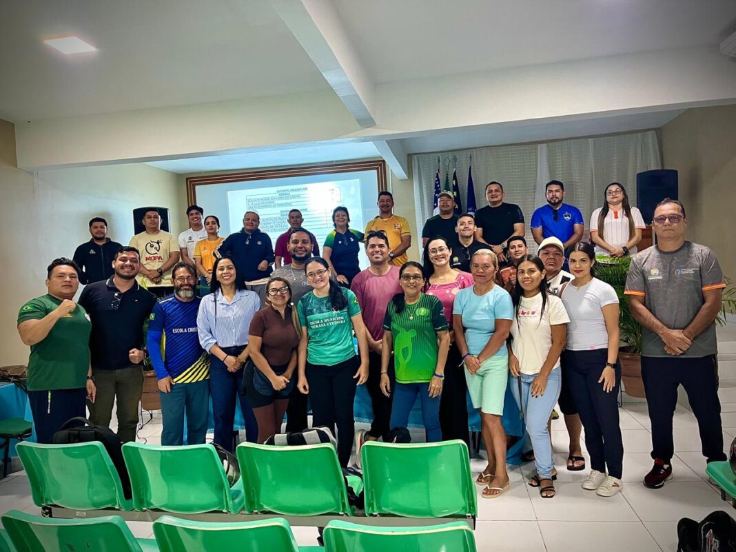 A data foi anunciada nesta quarta-feira, 25, em reunião no auditório da Escola Estadual Senador João Bosco e contou com a presença dos professores de Educação Física das escolas da rede municipal, estadual, federal e do ensino privado, classificadas para a etapa final, ao comando dos coordenadores da Semjel, Bruno Melo e Rian Marchão, da coordenadora de Educação Física da Seduc, Rayza Gadelha, e da Semed, Nataly Cardoso, com apresentação do coordenador técnico dos jogos, Thiago Brelaz.