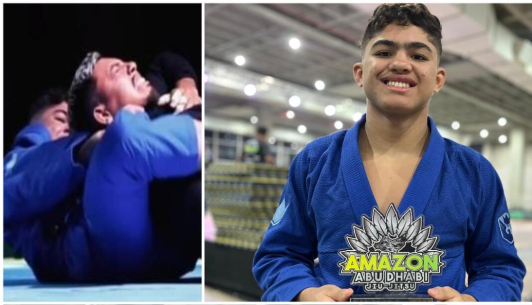 O raio caiu duas vezes no mesmo lugar, aliás, deu foi “cria” na mesma academia. O faixa azul Kalebe Henrique Sartarelli Pereira, aluno do professor Melqui Galvão, repetiu o feito do fenômeno Mica Galvão ao finalizar, como faixa Azul Juvenil, um atleta da categoria Preta Adulto meio-pesado durante o evento Amazon Abu Dhabi de Jiu-Jítsu.