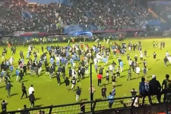 A imprensa indonésia também informa que a confusão teria começado após torcedores terem invadido o campo para protestar contra os jogadores e funcionários do Arema FC, time da casa, que perdeu por 3 x 2. Em filmagens publicadas nas redes sociais, é possível enxergar uma grande quantidade de pessoas correndo pelo gramado do estádio Kanjuruhan.