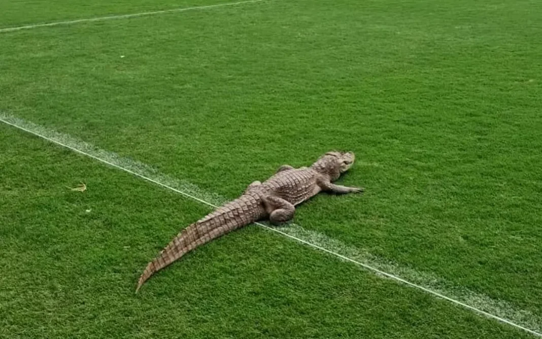 Na manhã desta sexta-feira (25), o Vasco recebeu um visitante inusitado no CT Moacyr Barbosa. Um jacaré foi encontrado por funcionários do clube no gramado. Naquele momento, o campo não estava sendo utilizado. A foto viralizou em grupos da torcida e logo caiu nas redes sociais.