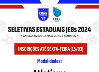 Inscrições para seletivas de Atletismo, Wrestling e Xadrez para JEBs Sub-18...