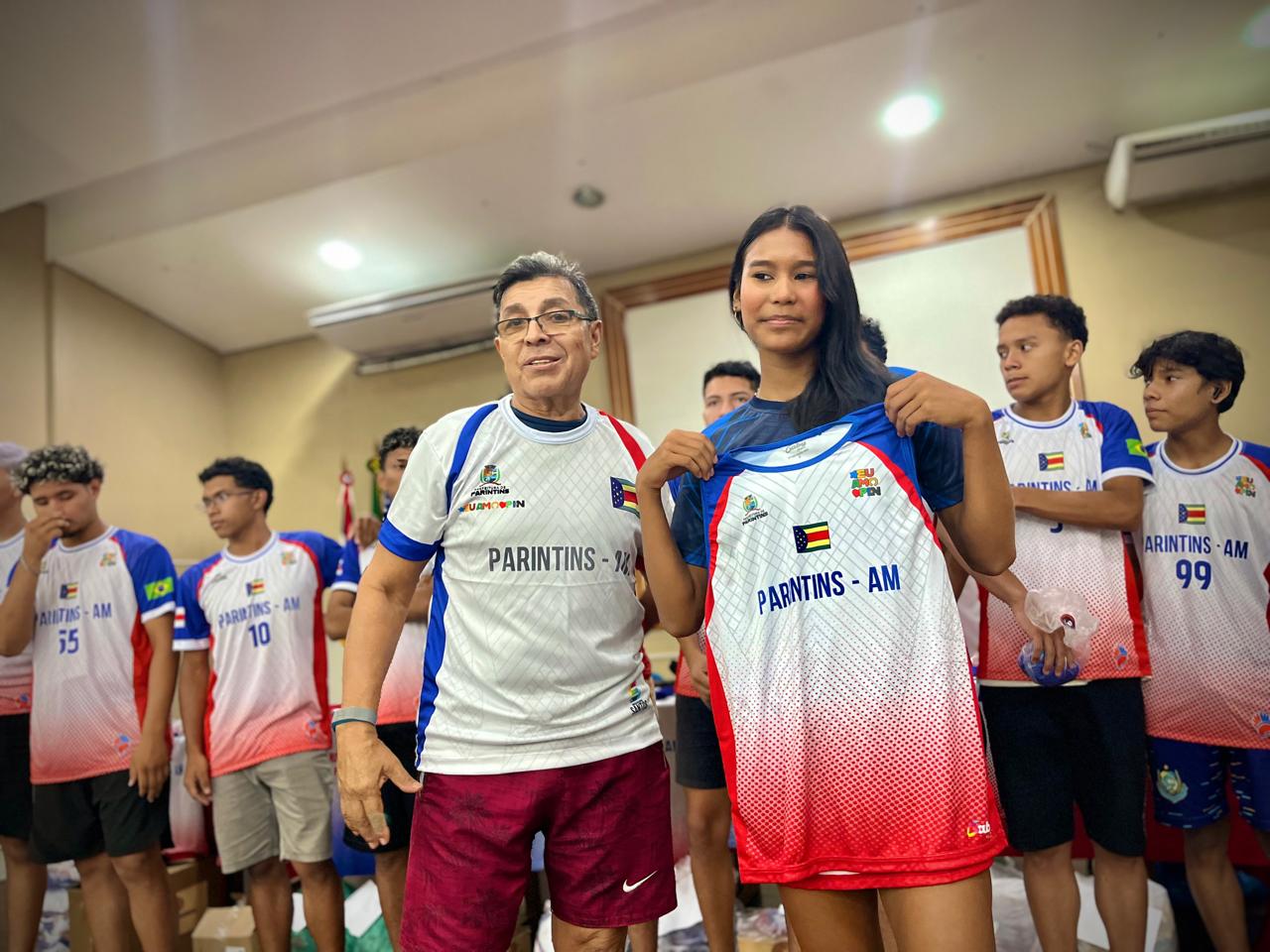 Com o objetivo de padronizar e fortalecer o espírito esportivo de estudantes-atletas da cidade e da zona rural, a Prefeitura de Parintins, por meio da Secretaria Municipal de Juventude, Esporte e Lazer (Semjel), realizou neste domingo, 19, a entrega dos uniformes para a delegação que vai representar o município na Seletiva do Polo III – etapa do Baixo Amazonas, do 47º Jogos Escolares do Amazonas (JEA’s 2026).