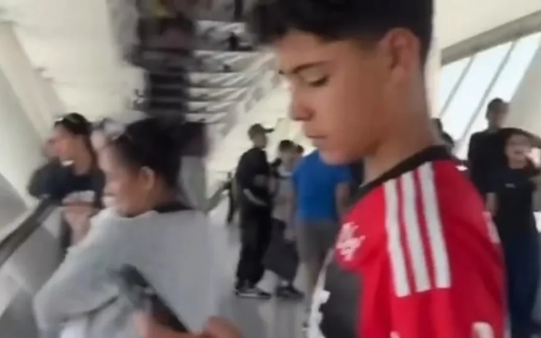 Em vídeo divulgado nas redes sociais, o garoto aparece rapidamente em uma das janelas da torre com o uniforme atual do Flamengo. Ele mexia no celular enquanto foi filmado.