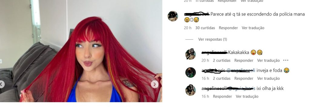 “Parece até q tá se escondendo da polícia mana”, escreveu a seguidora. Ruivinha não respondeu, mas já disse em outra postagem que está printando que a acusa, e que depois “não adianta pedir desculpa”.