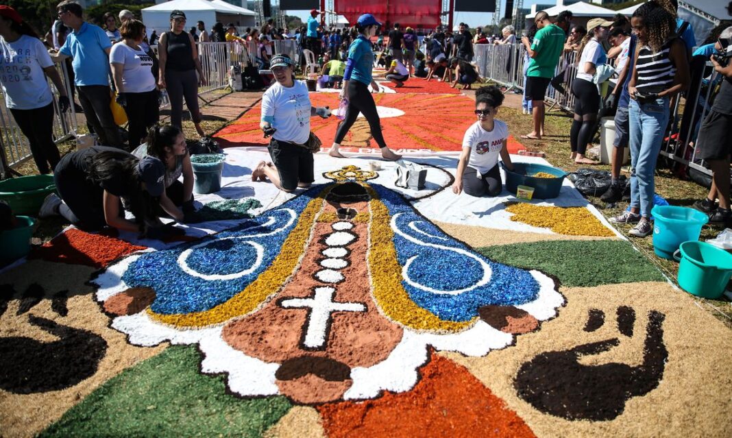 O coordenador do Tapete Corpus Christi na Esplanada, Aloísio Parreiras Rodrigues, que participa das celebrações há 20 anos, explica a logística de preparação do mosaico a céu aberto. “Três meses antes, começamos a trabalhar com as juventudes das paróquias do Distrito Federal. Depois, recebemos as sugestões de desenhos, selecionamos 25 deles e seguimos com a organização para conseguir o material para fazer os tapetes. Finalmente, no dia de Corpus Christi, nos reunimos para montá-los e celebrar, o que chamamos de festa da unidade”.