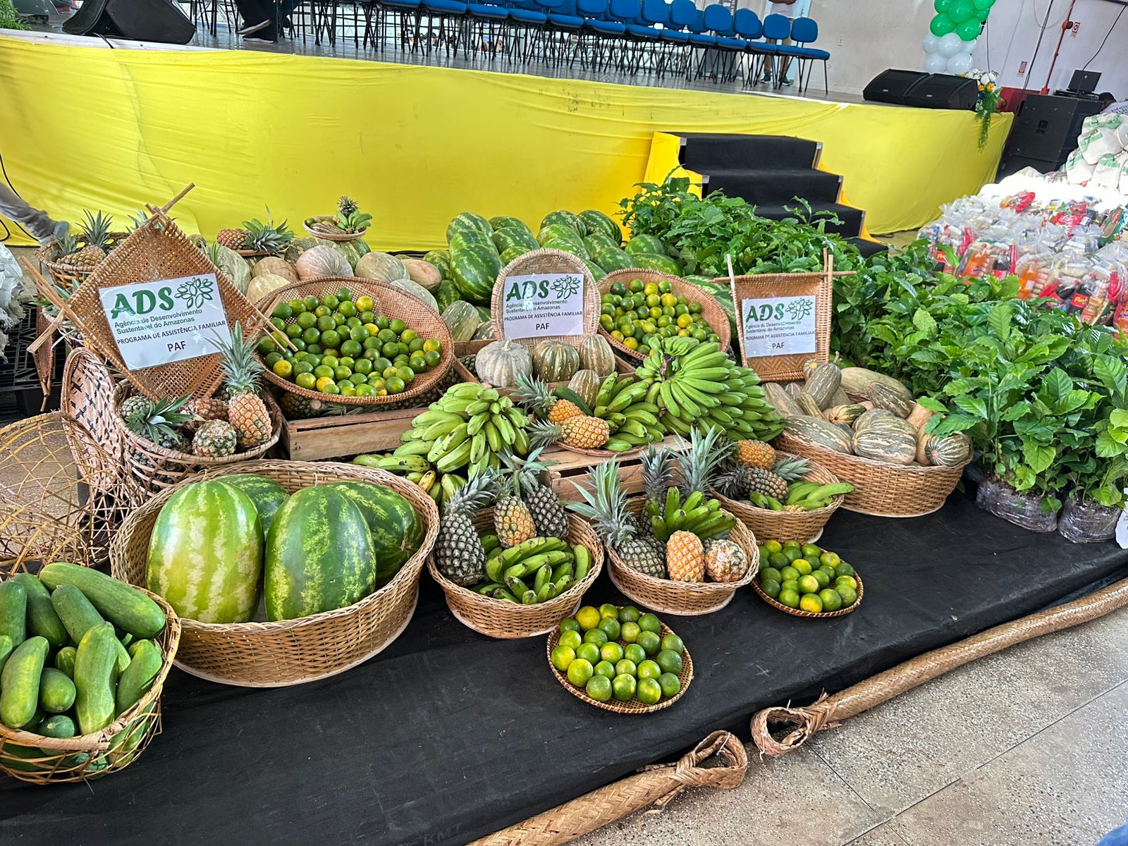 Já em Tefé, ADS doou 2,75 toneladas de melancia, abacaxi, banana, abóbora, cheiro verde misto e couve, para a União Municipal de Entidades Comunitárias (Umec). Ainda município, foram entregues 50 kits roçado, 900 sacos de ráfia, 600 mudas de café, dois aeradores, e fez o repasse um cheque, no valor de R$ 10,2 mil, a um trabalhador da Feira de Produtos Regionais da ADS no município.
