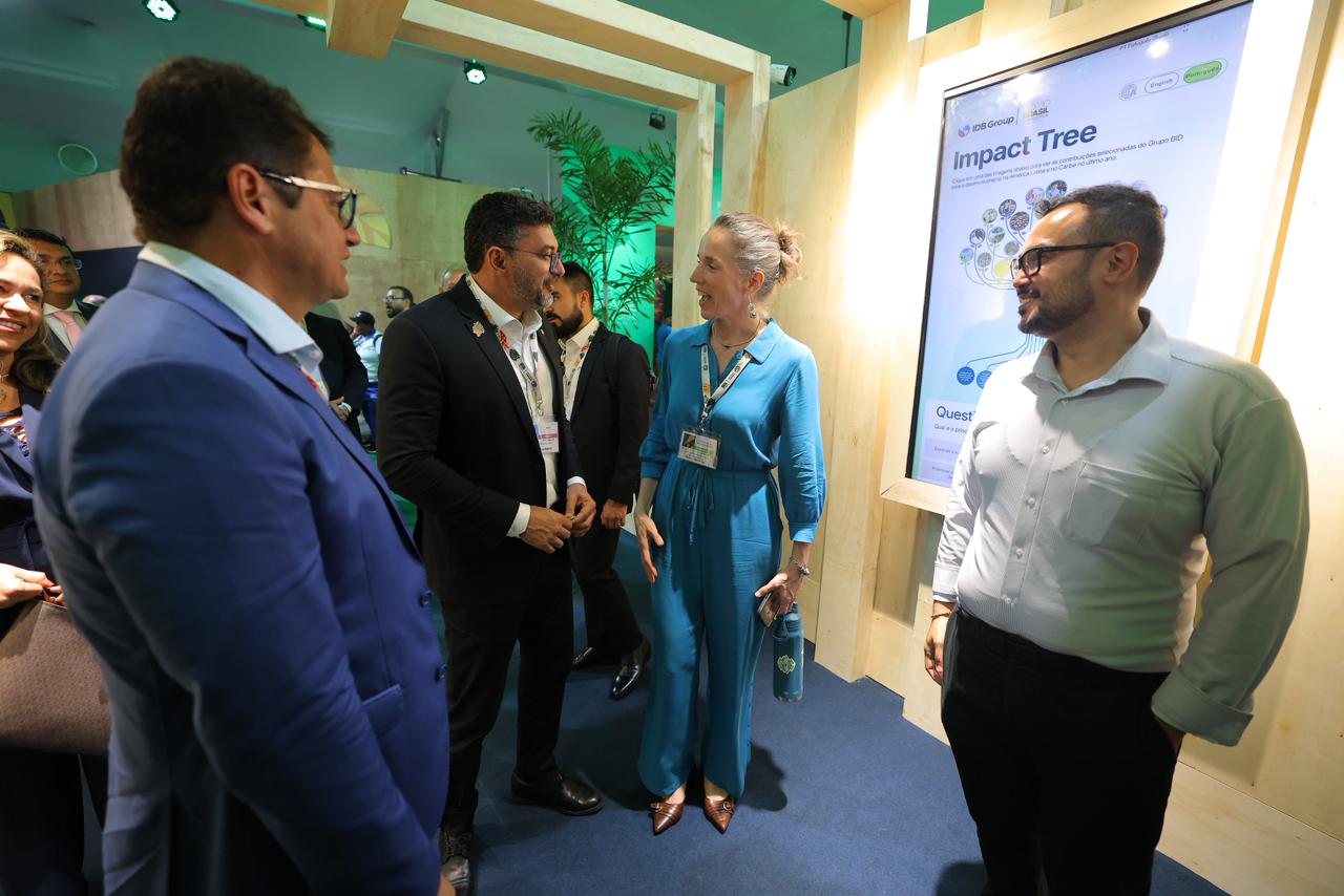 O governador Wilson Lima e o secretário Marcellus Campêlo visitaram, ainda, o pavilhão do Banco Interamericano de Desenvolvimento (BID), financiador do Prosamin+, que também está apresentando o programa como case de sucesso. Considerado pelo banco como emblemática na América Latina, a iniciativa reassenta populações de áreas de risco, promovendo saneamento básico e requalificação urbanística para mitigar os efeitos das alagações e melhorar a resiliência climática.