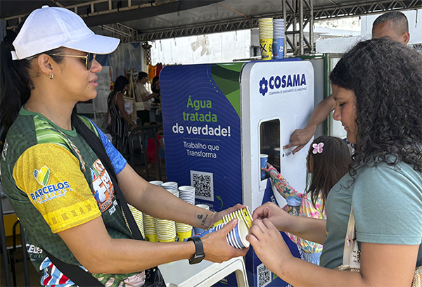 O Governo do Amazonas, por meio da Companhia de Saneamento do Amazonas (Cosama), iniciou nesta quinta-feira (29/01), em Barcelos (a 399 quilômetros de Manaus), a distribuição ao público de água tratada por meio de máquinas purificadoras e copos biodegradáveis durante a realização do 30º Festival do Peixe Ornamental.