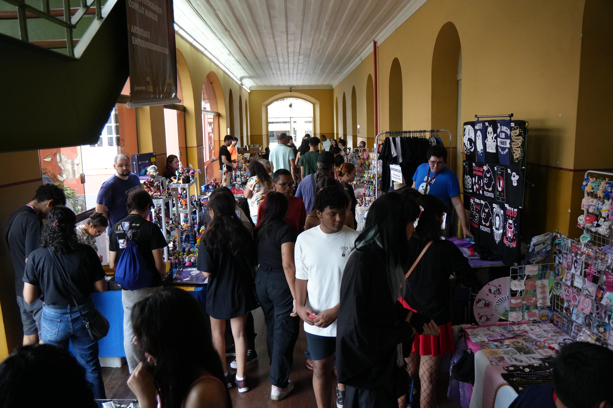 A feira criativa reuniu artistas e empreendedores do segmento geek, com produtos variados como quadros, ilustrações autorais, bótons, chaveiros, quadrinhos, bolsas e action figures, além de jogos disponíveis no primeiro andar do Palacete.