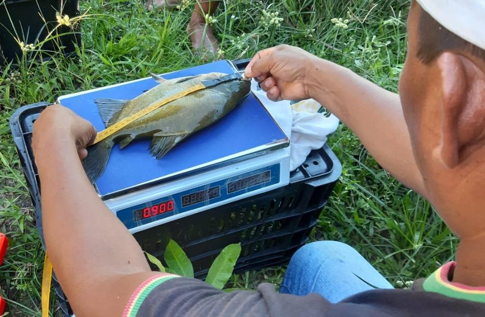 Durante visitas técnicas às propriedades rurais de piscicultores, o Instituto de Desenvolvimento Agropecuário e Florestal Sustentável do Estado Amazonas em Alvarães (Idam/Alvarães) tem realizado atividades de Demonstração de Método (DM) de biometria. Segundo o gerente do Idam em Alvarães, João Mendes dos Santos, a atividade consiste em pesar e medir o peixe para acompanhar o seu crescimento.