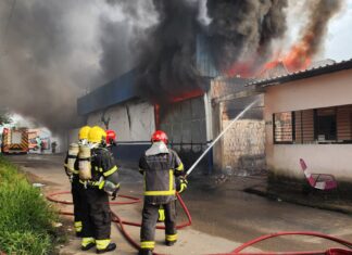 Corpo de Bombeiros combate incêndio em galpão de fábrica na zona...