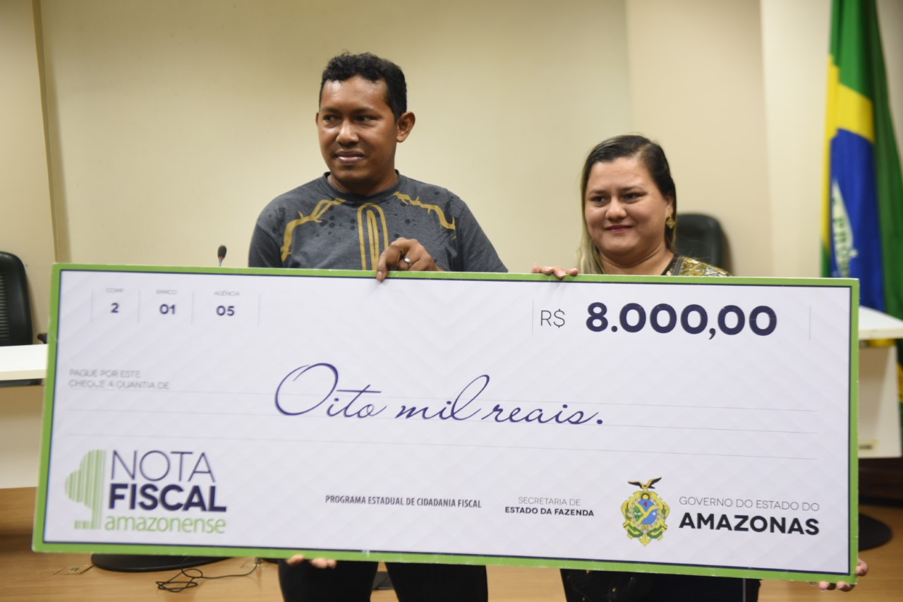 O pedreiro Arleson de Souza Vieira, de 37 anos, foi o grande vencedor do 45º sorteio mensal da campanha Nota Fiscal Amazonense (NFA). A entrega dos cheques simbólicos dos sorteados e das instituições sociais beneficiadas aconteceu nesta quinta-feira (16/05), no auditório da Secretaria de Estado da Fazenda (Sefaz-AM), bairro Aleixo, zona centro-sul.
