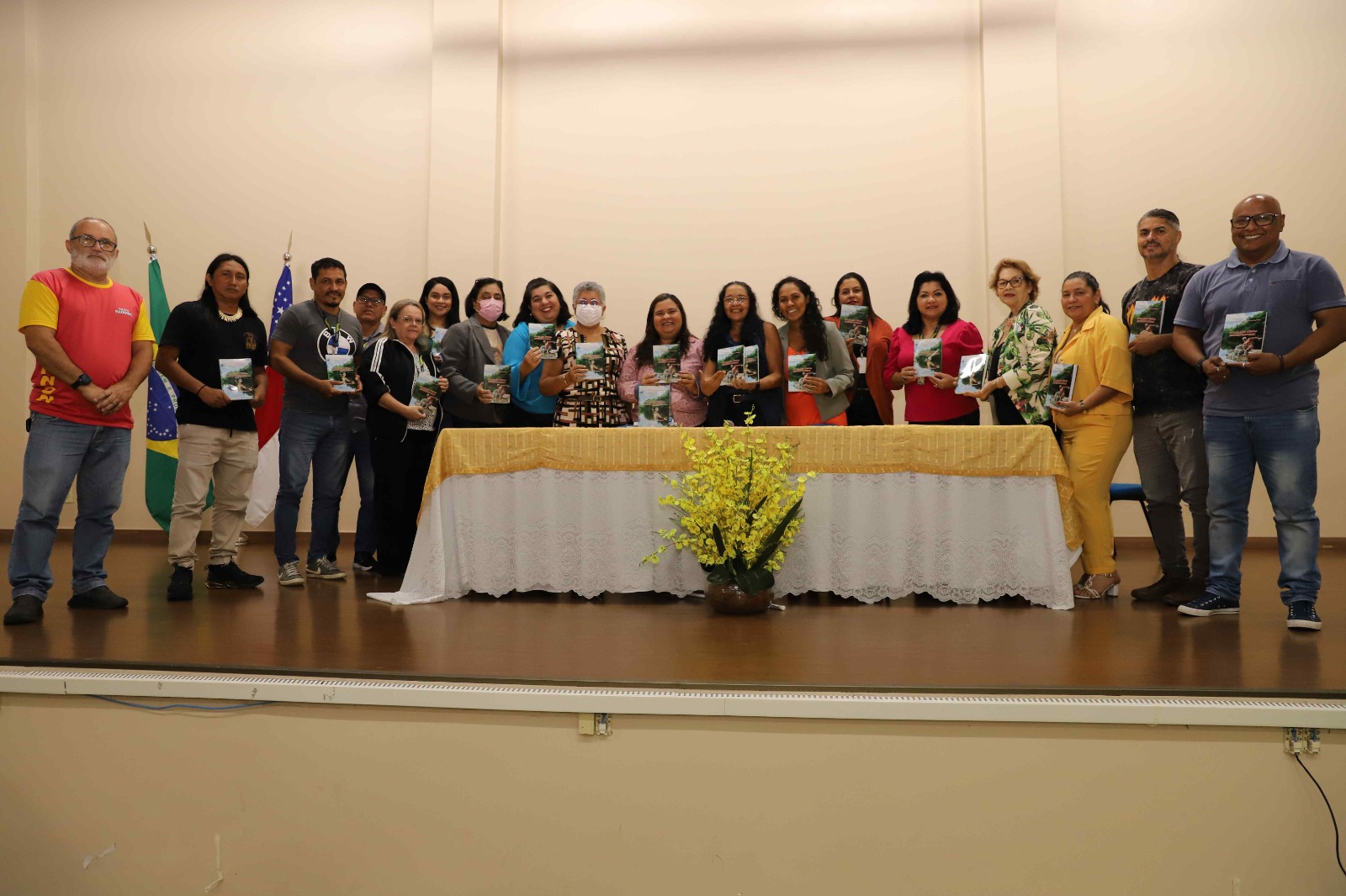 A educação escolar indígena foi tema de dois livros lançados, nesta terça-feira (14/03), pela professora dra. Maria Rosângela Negreiros. Com as obras “Educação Física Intercultural” e “Educação – O Simbolismo da Etnocultura Física no Cotidiano Antropo-Sócio-Educacional Curricular do Professor Sateré-Mawé”, a autora propõe um debate sobre interculturalidade, práticas pedagógicas e Educação Física. O lançamento ocorreu no auditório do Centro de Formação Profissional Padre José Anchieta (Cepan).