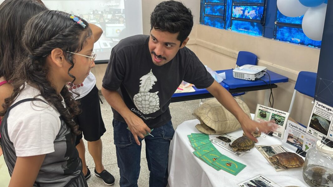 Numa ação de conscientização e conservação de espécies de quelônios da região, a Fundação de Amparo à Pesquisa do Estado do Amazonas (Fapeam) levou, neste sábado (28/09), para ação Governo Presente o projeto de pesquisa “Manejo participativo, genética da conservação e uso sustentável de tartarugas da Amazônia aplicando o turismo de base comunitária”, apoiado pelo Governo do Amazonas, via Fapeam. O evento ocorreu na Escola Estadual Jairo da Silva Rocha, no bairro São José Operário 4, zona leste de Manaus.