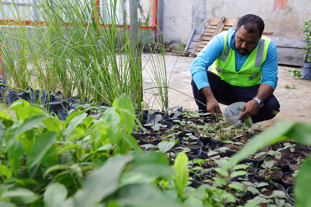 Para isso, foi criado o viveiro de mudas, uma iniciativa inédita em obras públicas no Amazonas. O local já produziu mais de 10 mil mudas. No canteiro de obras da Comunidade da Sharp, na zona leste, são cultivadas mais de 30 espécies que serão usadas no reflorestamento de áreas do Prosamin+, como buritizeiro, bacabeira, sumaúma, seringueira, açaizeiro, ingazeira, pau pretinho, entre outras. A estimativa é que 50 mil mudas sejam produzidas para as ações de recomposicão vegetal do projeto.