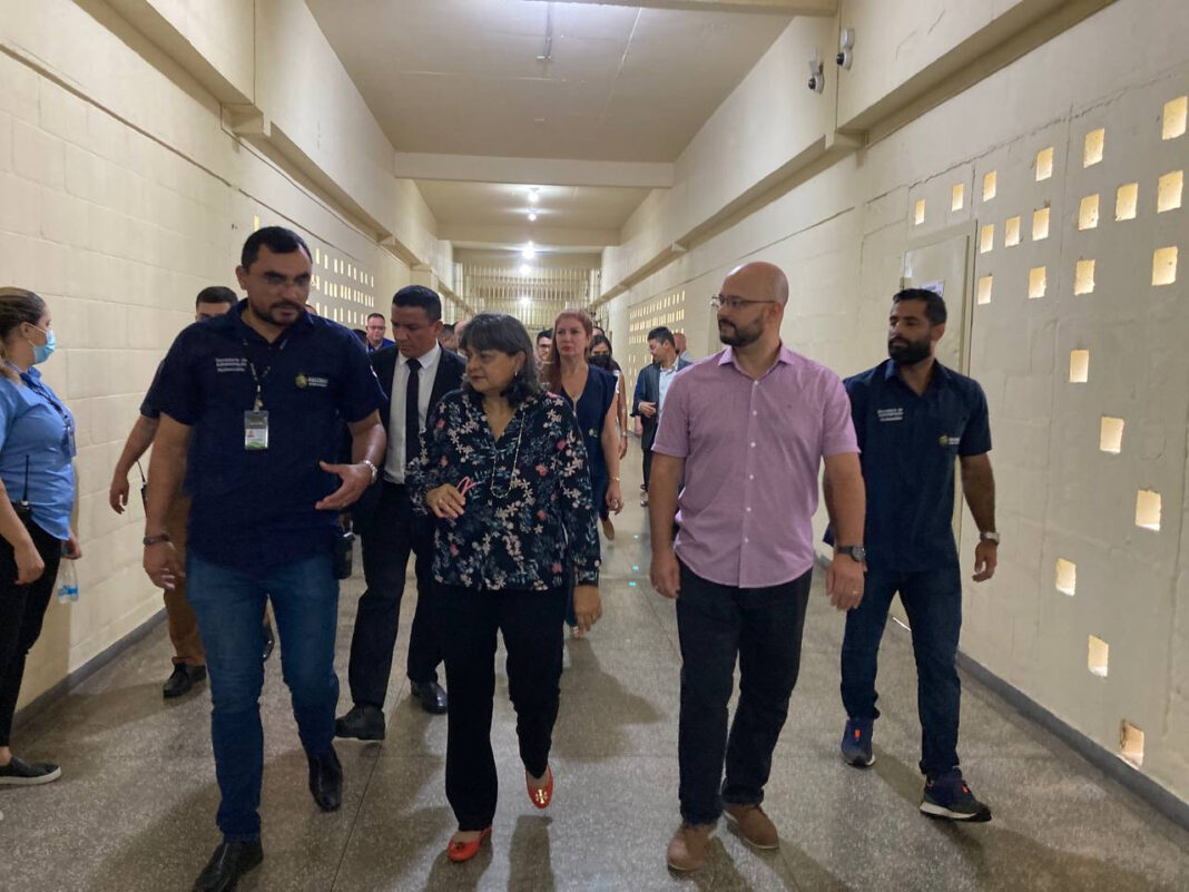 Coordenadas pelo Secretário da Seap em exercício, Capitão Allan de Azevedo e pelo Secretário Executivo Adjunto, Major Wallasson Lira, a inspeção realizada hoje contou com a participação da Desembargadora Luiza Cristina Marques, Presidente do Grupo de Monitoramento e Fiscalização do Sistema Carcerário do Tribunal de Justiça do Amazonas (GMF/TJAM), do Juiz de Direito da área de Execução Penal e membro do (GMF), Glen Hudson Paulain Machado e da Juíza Ana Paula Medeiros, coordenadora do GMF/TJAM.