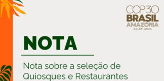 Nota sobre seleção de Quiosques e Restaurantes da COP30