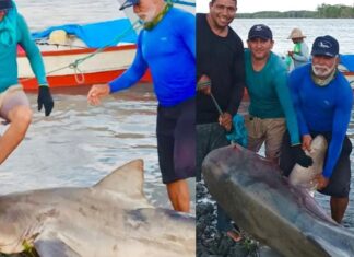 No último sábado (26), um tubarão de dois metros foi capturado por pescadores de uma praia de Salinópolis, nordeste do Pará.O animal ficou preso...