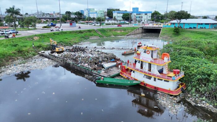 Além da limpeza direta na orla, a prefeitura mantém uma rede de 14 ecobarreiras instaladas em pontos estratégicos dos igarapés. Entre janeiro e março deste ano, essas estruturas foram responsáveis por reter aproximadamente 1.050 toneladas de resíduos, evitando que o material chegasse ao rio Negro.