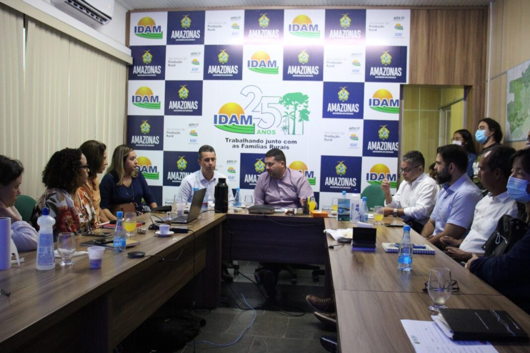 Representantes do Instituto de Desenvolvimento Agropecuário e Florestal Sustentável do Estado do Amazonas (Idam) e do Instituto de Proteção Ambiental do Amazonas (Ipaam) se reuniram, hoje (20/04), na sede do Idam, com representantes da Secretaria do Meio Ambiente (Sema), Deutsche Gesellschaft für Internationale Zusammenarbeit (GIZ), Federação da Agricultura e Pecuária – Amazonas (Faea), Secretaria Muncipal de Meio Ambiente e Defesa Civil de Boca do Acre (Semadec) e Serviço Nacional de Aprendizagem Rural (Senar), com o objetivo de debater a implementação do projeto Pra Valer.