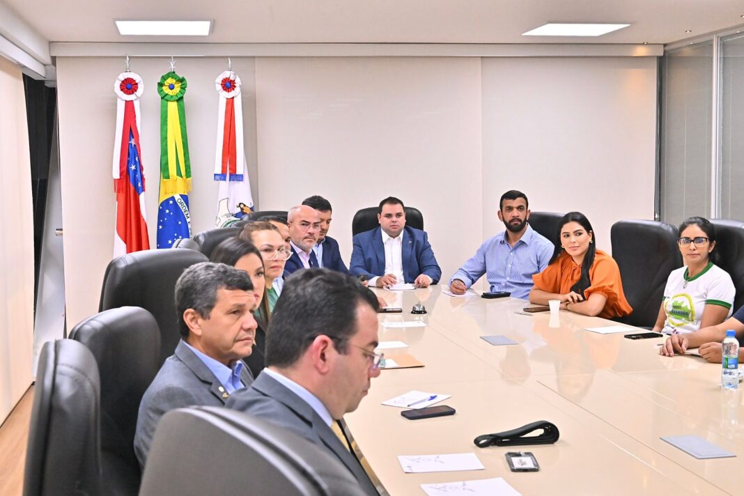 Na tarde desta quinta-feira (18), a Assembleia Legislativa do Amazonas (Aleam) mediou a reunião entre os professores do Estado e o Poder Executivo para chegar a um denominador sobre as reivindicações da categoria. Conduzida pelo presidente da Casa, deputado Roberto Cidade (União Brasil), a reunião contou com a presença de treze parlamentares, do secretário de Governo, Sérgio Litaiff Filho e de representantes do Sindicato dos Trabalhadores em Educação do Estado do Amazonas (Sinteam) e da Associação dos Servidores Administrativos da Educação (Avamseg).