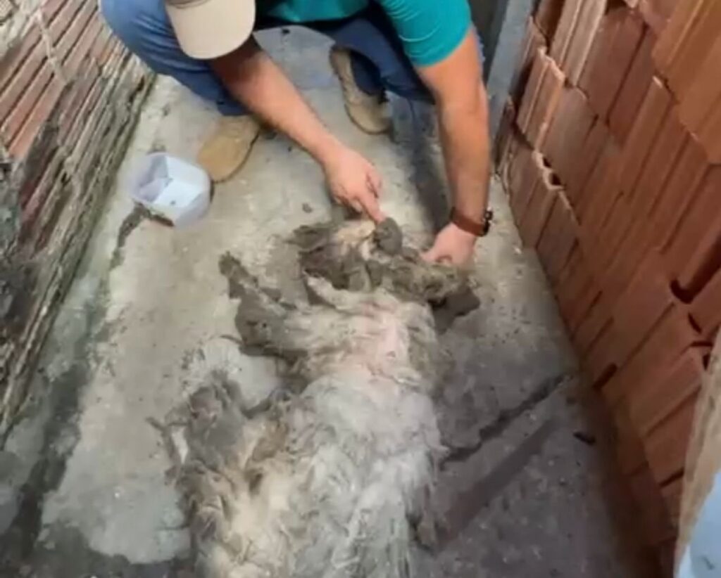 As equipes do instituto chegaram até a casa após denúncias de moradores, que começaram a ouvir os gritos de sofrimento do animal. O cachorro estava escondido por cima de um pelo que não era tosado há anos. Além disso, ele está tão debilitado que não consegue mais ficar em pé.