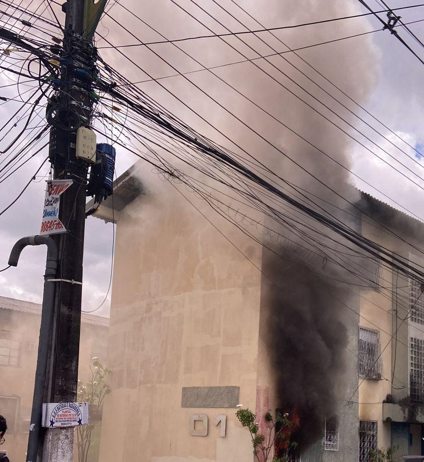 Um apartamento pegou fogo no bloco 01 do Eldorado, bairro Parque 10 de Novembro, zona Centro-Sul de Manaus, na tarde desta quarta-feira (7). Uma moradora inalou tanta fumaça que foi levada ao hospital 28 de Agosto.