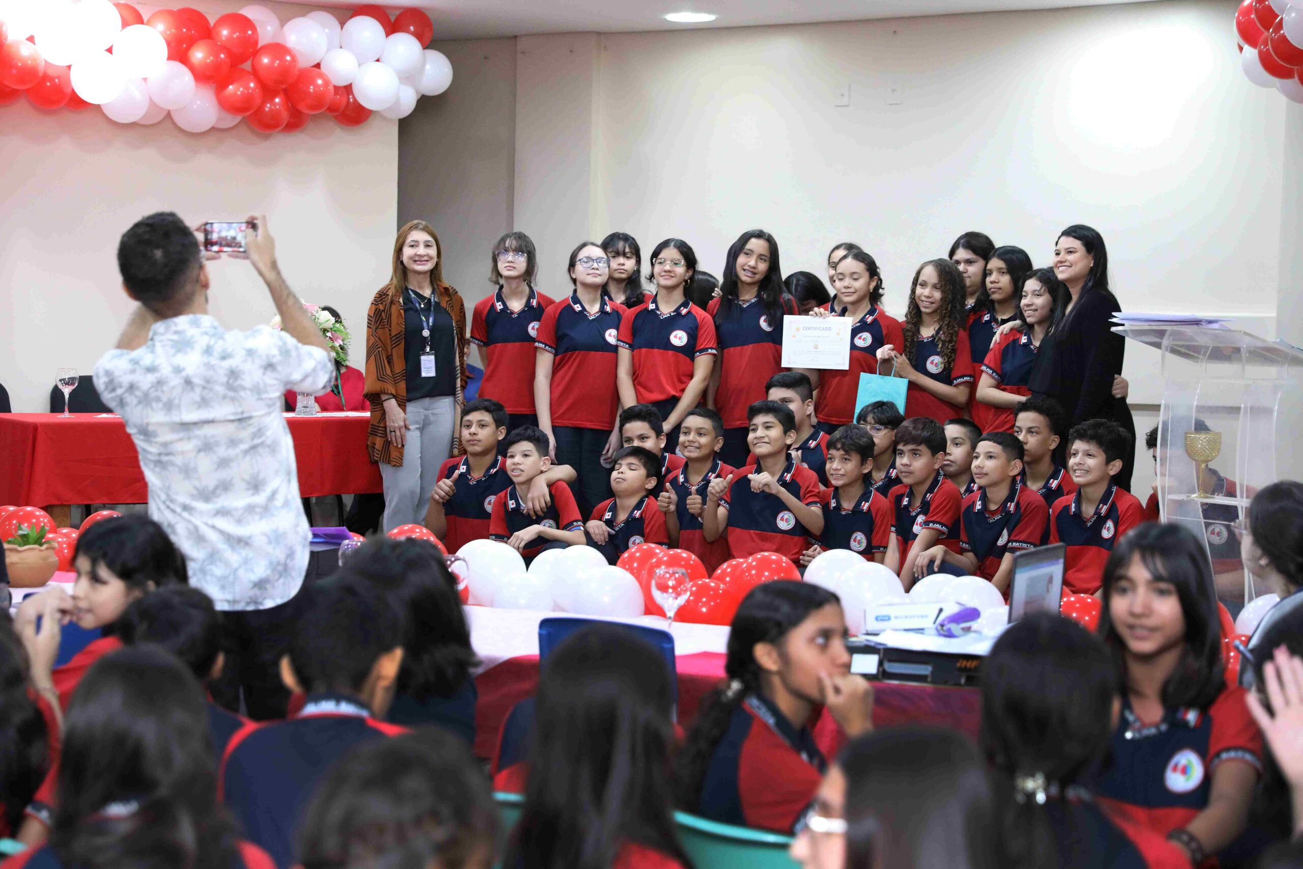 A Escola Estadual de Tempo Integral (Eeti) Bilíngue Professor Djalma da Cunha Batista realizou, nesta terça-feira (25/11), a culminância do projeto interdisciplinar “Multiletramento: uma sequência didática de Kamishibai”, desenvolvido com cerca de 200 estudantes do 6º ano do Ensino Fundamental. A ação integra o Programa Institucional de Bolsas de Iniciação à Docência (Pibid), da Coordenação de Aperfeiçoamento de Pessoal de Nível Superior (Capes), e reuniu literatura, arte, língua portuguesa, língua japonesa e atividades lúdicas de movimento corporal.