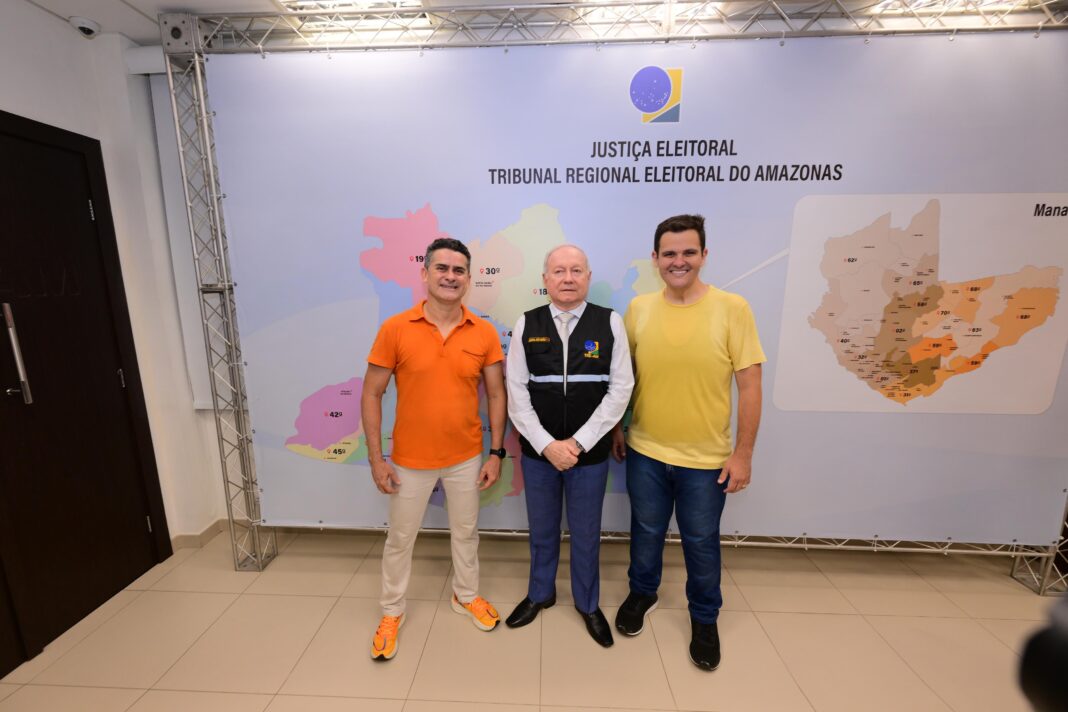 Acompanhado pelo vice-prefeito Renato Junior e pelo vice-governador do Amazonas Tadeu de Souza, David foi recebido pelo desembargador João Simões, presidente do TRE/AM.