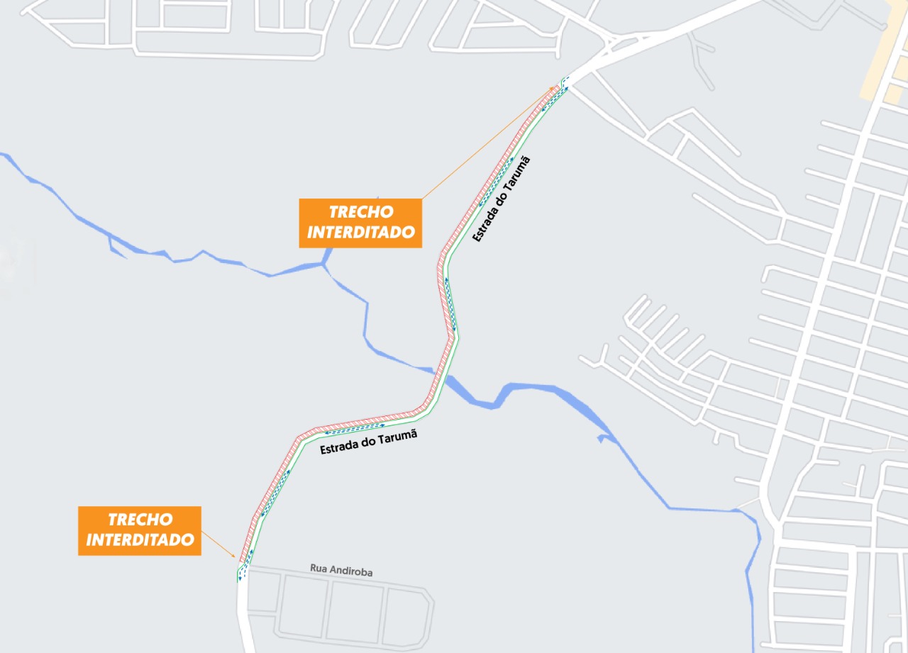 • quem vem do bairro do Tarumã em direção ao aeroporto ou à Ponta Negra deve seguir na pista da esquerda no mesmo trecho compreendido entre as ruas Praia de Olinda e Andiroba;