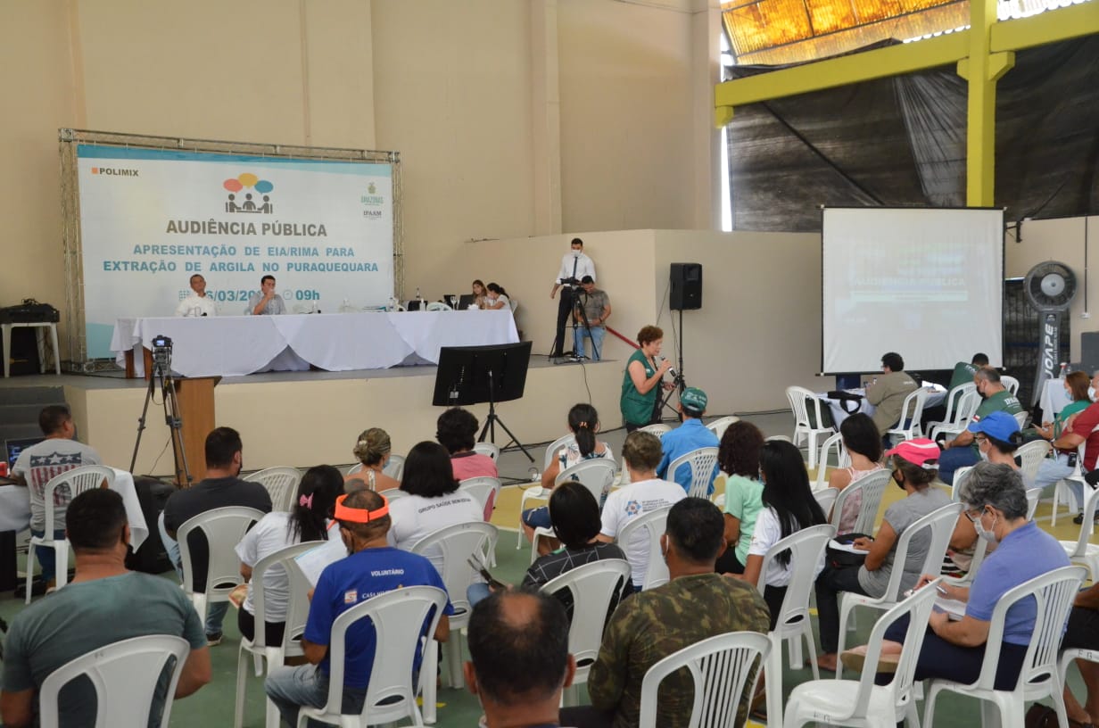 O Instituto de Proteção Ambiental do Amazonas (Ipaam) realizou audiência pública, neste sábado (26/03), no bairro Puraquequara, zona leste de Manaus, para apresentar à comunidade os Estudos de Impactos Ambientais e o Relatório de Impactos Ambientais (EIA/RIMA) referente a atividade de extração de argila para fabricação de cimento pela empresa Polimix Ltda.