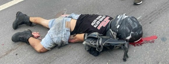 Um motociclista ainda sem identificação teve a cabeça esmagada por um caminhão cegonha na tarde desta segunda-feira (6), na avenida das Flores, sentido bairro Lago Azul, zona Norte de Manaus.
