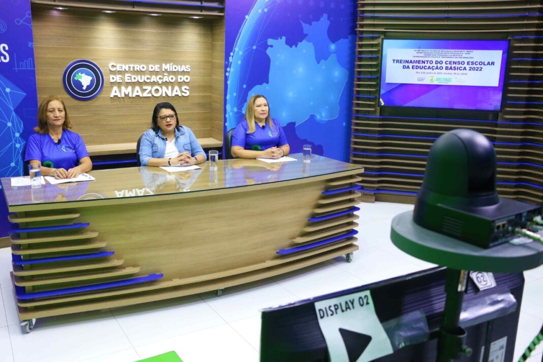 Iniciou, nesta quarta-feira (08/06), o Treinamento do Censo da Educação Básica 2022 para os 61 municípios do interior do Amazonas. Realizada por mediação tecnológica no estúdio do Centro de Mídias da Educação do Amazonas (Cemeam), da Secretaria de Estado de Educação e Desporto, o treinamento orienta e capacita gestores e multiplicadores da educação pública e privada sobre o sistema Educacenso.