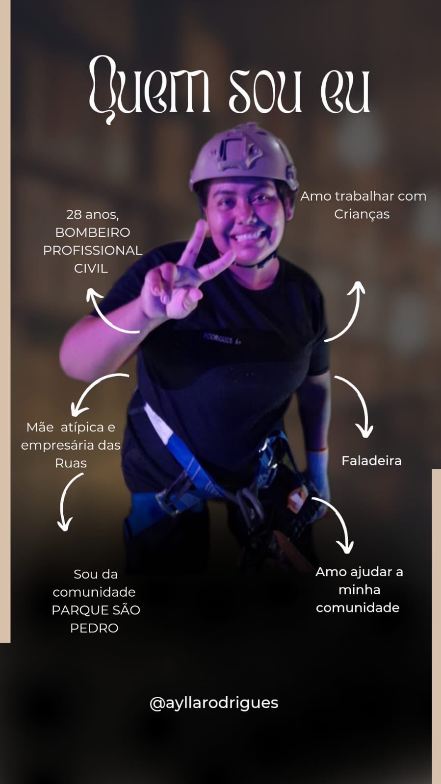 Como instrutora e bombeira civil, Aylla tem um perfil multifacetado, combinando habilidades técnicas e um profundo senso de responsabilidade social. Sua experiência como bombeira civil reflete seu compromisso com a segurança e o bem-estar da comunidade, enquanto sua atuação como instrutora demonstra seu empenho em educar e capacitar os jovens.