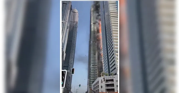 Um incêndio de grandes proporções atingiu, neste sábado (14), um edifício de 67 andares em Dubai, nos Emirados Árabes Unidos.