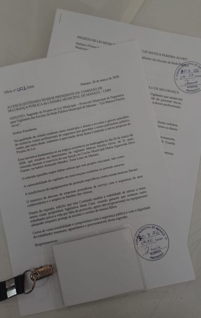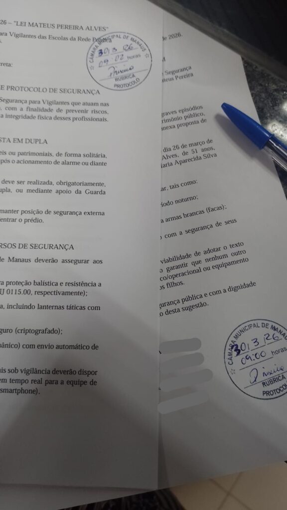 Batizada de “Lei Mateus Pereira Alves”, a proposta institui o Protocolo de Segurança e Proteção aos Vigilantes da Rede Municipal de Manaus, estabelecendo regras rígidas de atuação e infraestrutura. O objetivo é evitar que novos crimes ocorram e garantir que as escolas deixem de ser alvos fáceis para a criminalidade.