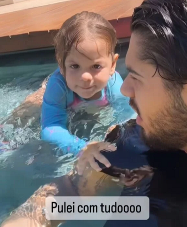 Zé Felipe usou o Instagram para mostrar que pulou na piscina, desesperado, para salvar Maria Flor, de 1 ano e 8 meses. A pequena caiu por acidente na água!