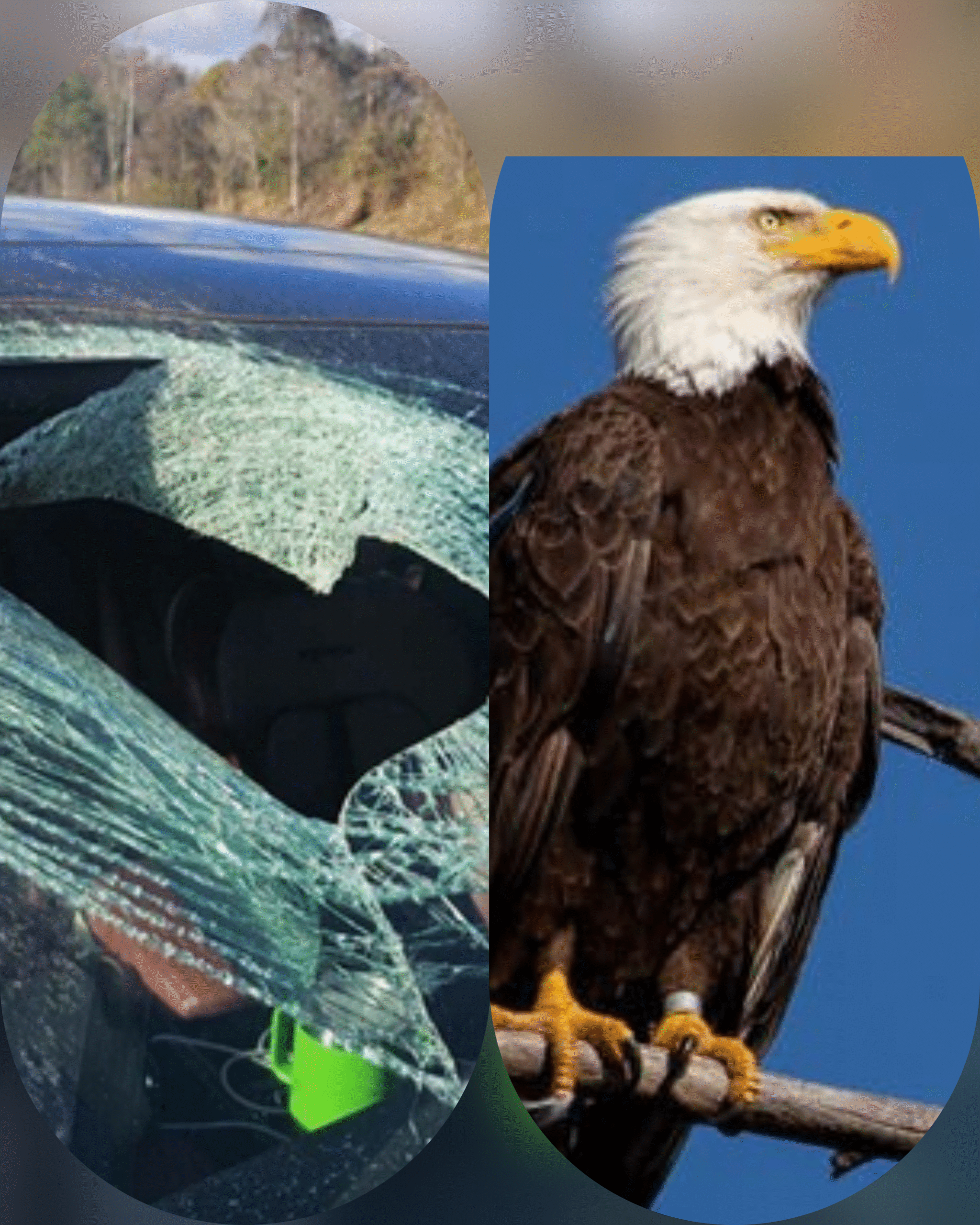 “Você pode não acreditar em mim, mas uma águia-careca acabou de soltar um gato pelo meu para-brisa”, disse o motorista na ligação para o 911. “Estilhaçou completamente meu para-brisa.”
