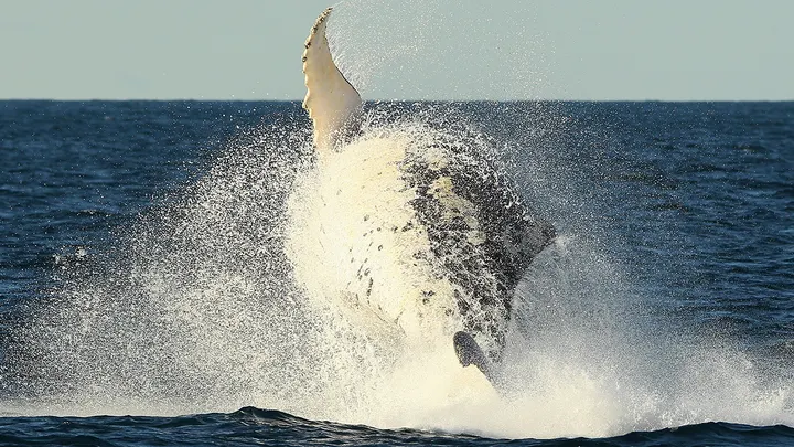 Uma baleia virou no sábado um barco de quase 15 pés na costa da Austrália, deixando um homem morto e outro no hospital, disseram autoridades.