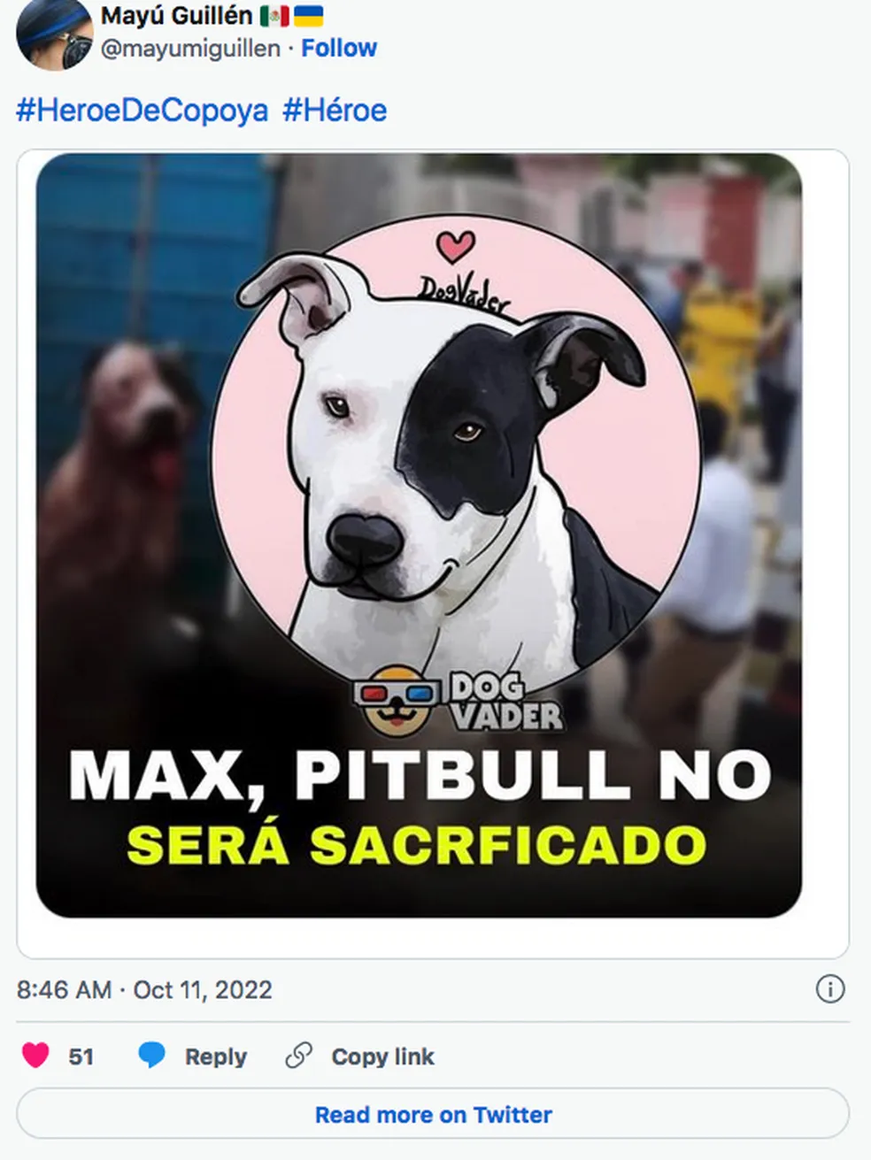 A história viralizou tanto no país que Paulina Peña, filha do ex-presidente mexicano Enrique Peña Nieto, também usou sua plataforma do Instagram para mostrar seu apoio ao cachorro em questão. Alfredo Ruiz Coutiño, diretor de Proteção contra Riscos Sanitários da Secretaria de Saúde de Tuxtla Gutiérrez, assegurou que o pitbull não será sacrificado.