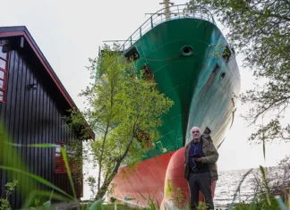 Homem acorda e encontra navio de carga encalhado em seu quintal