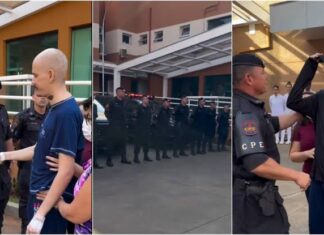 O policial militar Erick Oliveira de Medeiros Moreira, de 23 anos, que está hospitalizado para tratar um câncer, recebeu uma homenagem emocionante dos colegas...