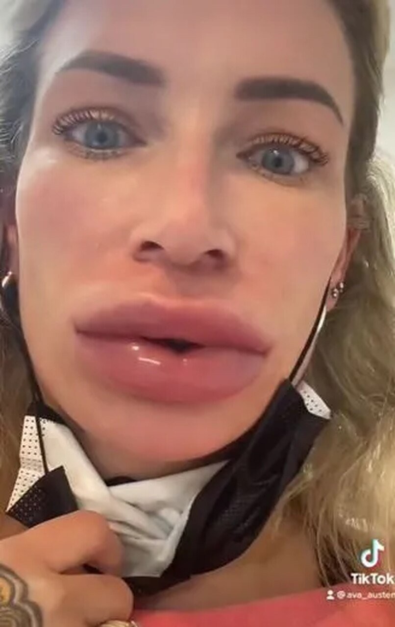 A atriz pornô Ava Austen postou, em um vídeo no TikTok, o antes e depois do procedimento desastroso. Segundo ela, após o preenchimento, os lábios e o rosto ficaram o triplo do tamanho normal.