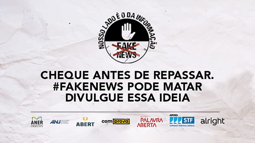 A frase de abertura da campanha, “Seja responsável. Não acuse sem checar”, é uma das 11 peças promocionais divulgadas pela Associação Nacional de Editores de Revistas (Aner), Associação Nacional de Jornais (ANJ), Associação Brasileira de Emissoras de Rádio e Televisão (Abert), o Projeto Comprova e o Instituto Palavra Aberta. As entidades contam com apoio do Supremo Tribunal Federal (STF).