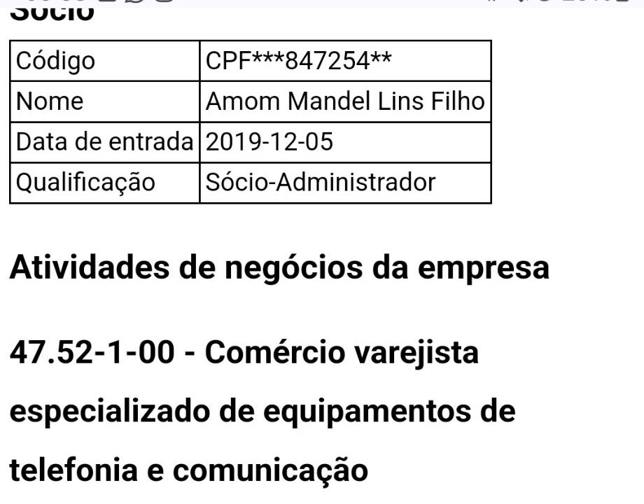 Com capital social declarado de R$ 10 mil, a empresa tem um ramo de atividade bem variado: vai desde o comércio de alimentos e equipamentos de telefonia e comunicação, até a produção de vídeos e programas de televisão, e o fornecimento de serviços de hospedagem na internet e publicidade, entre outros.