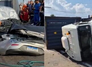 Acidente entre carreta e veículo de passeio no bairro Educandos provoca mudanças no trânsito