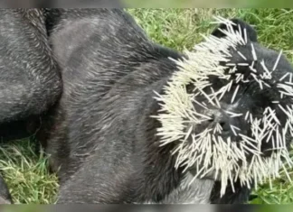 Cão fica sem olho esquerdo após tentar comer porco-espinho