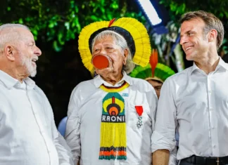 Cacique Raoni recebe honraria de Macron e pede demarcações a Lula