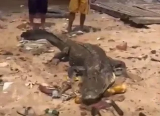 Um jacaré, de cerca de 2,5 metros, foi encontrado ferido próximo a um centro comercial de Manaus, capital do Amazonas, nesta sexta-feira (29/9). Segundo testemunhas, o animal teria...